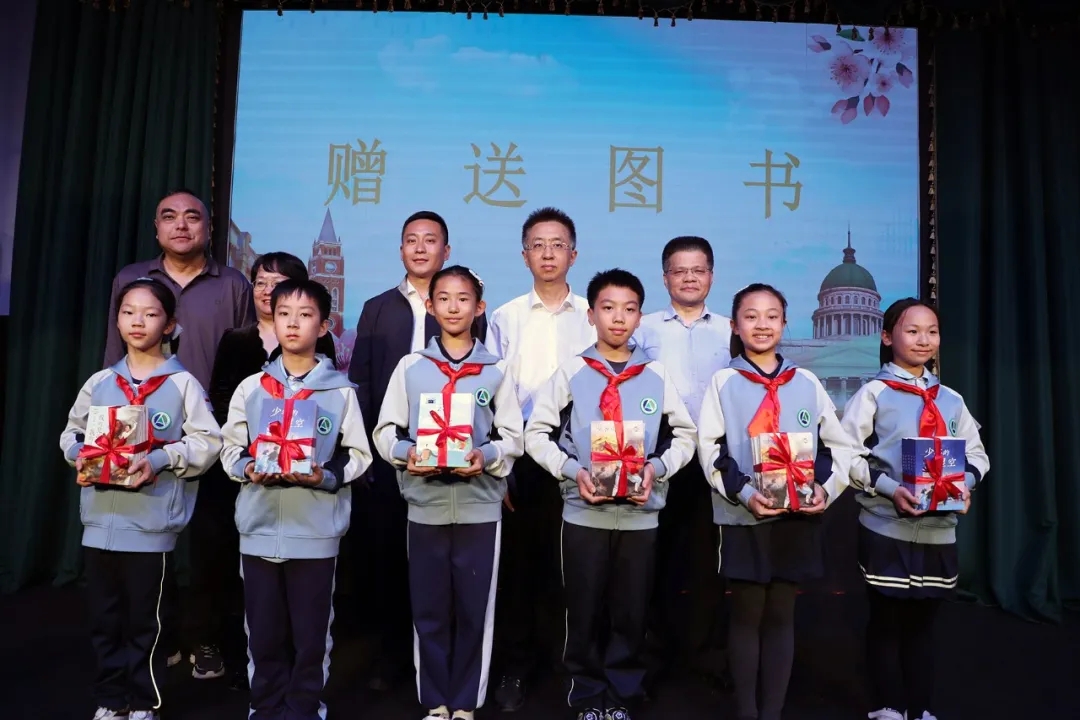 鞍山道小学教师现场讲述课本中孙中山先生的革命故事,生动展现中华儿女的家国情怀。活动现场还举行了新蕾出版社与和平区联合赠书仪式,为各族青少年送上精神食粮,激励他们从书籍中汲取智慧、铸牢中华民族共同体意识。整场活动在五地师生齐声高唱《爱我中华》的激昂旋律中圆满结束。